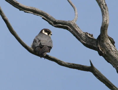 Der Baumfalke ist ein Zugvogel, der bei uns erst ab Ende April bis Anfang Mai in den Brutgebieten eintrifft. Als Baumbrüter, der keine eigenen Horste baut, ist er auf Feldgehölze oder Waldrandbereiche mit Krähennestern als Brutplatz angewiesen. Dabei bevorzugt er in unserem Raum lichte Kiefernbestände, nistet aber auch in Baumreihen mit alten Eichen oder Pappeln. Als Insekten- und Kleinvogeljäger benötigt der Baumfalke Jagdreviere mit ausreichendem Vogel- und Großinsektenbestand (Libellen). Diese Voraussetzungen erfüllen halboffene bis offene Feuchtgebiete (Flussniederungen, Feuchtwiesengebiete) und Heidelandschaften. Zur Brutzeit sucht der Baumfalke Gewässer, Moore, Heideflächen und Trockenrasen sowie Waldränder und Waldlichtungen als Jagdgebiete auf. Oft sieht man ihn über Gewässern nach Großlibellen jagen. Gegenüber Störungen im Horstbereich ist die Art sehr empfindlich.