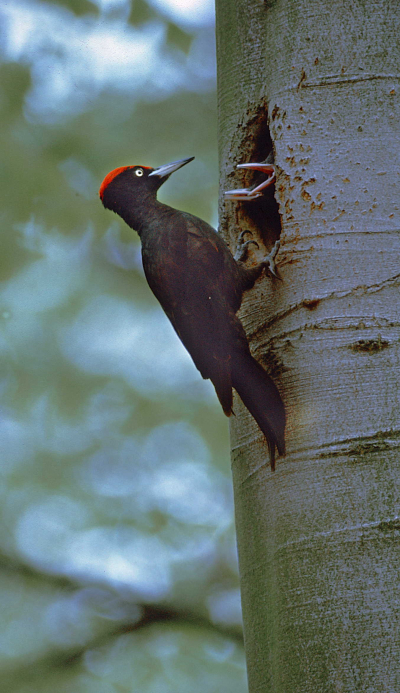 Der krähengroße Schwarzspecht benötigt als Brut- und Nahrungsrevier waldreiche Gebiete von mindestens 250 bis 500 Hektar Ausdehnung. Eine besondere Bedeutung haben dabei Altholzbestände, da für die Anlage von Brut- und Schlafhöhlen Bäume bestimmter „Qualität“ vorhanden sein müssen. Im Normalfall sind Höhlenbäume durch eine ca. 5 bis 10 Meter hohe astfreie Zone und einen Durchmesser von mehr als 35 cm gekennzeichnet. Die glattrindige Buche bietet wahrscheinlich einen besseren Schutz vor Feinden (Marder) als z.B. Kiefer und Fichte und wird daher bevorzugt als Höhlenbaum genutzt. Ein Brutpaar hat innerhalb seines Revieres neben der Bruthöhle noch mehrere Schlafhöhlen. Die Nahrung besteht überwiegend aus Insektenlarven, holzbewohnenden Käfern und Ameisen. Größere Nadel- und Mischwälder mit an Insekten reichen Totholzbäumen und alten Baumstümpfen bilden das Nahrungsrevier des Schwarzspechtes. Von diesen zentralen Revierbereichen aus werden aber auch benachbarte Gehölze der Feldflur angeflogen.