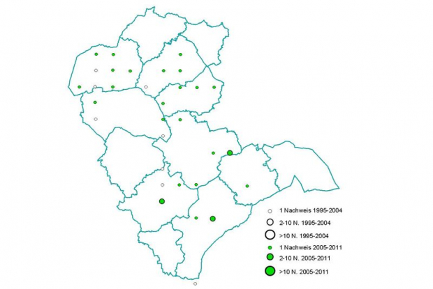 Der Eisvogel kommt im ganzen Kreis Gütersloh vor. Entscheidend ist das Vorhandensein von naturnahen Fließgewässern oder Teichanlagen. In den letzten Jahren sind Nachweise u.a. an der Hessel bei Versmold, am Wapelbach bei Kaunitz, an der Dalke bei Avenwedde, im Furlbachtal und an der Ems bei Rietberg erbracht worden. Fischteichgebiete wie die „Rietberger Fischteiche“ stellen einen idealen Lebensraum für den Eisvogel dar. Die Häufung der Nachweise im Nordteil (s. Karte) beruht auf einer intensiveren Erfassung. In der Saison nach dem frostreichen Winter 2008/2009 war ein starker Einbruch des Eisvogelbestandes zu verzeichnen. Etwa 80 bis 90% der bekannten Reviere blieben unbesetzt. Mittlerweile hat sich der Bestand wieder etwas erholt.
