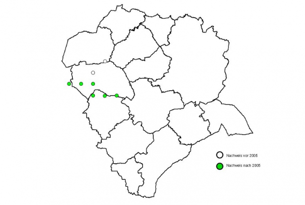 Die Helm-Azurjungfer besitzt ihren Verbreitungsschwerpunkt nur im Westen des Kreisgebietes.