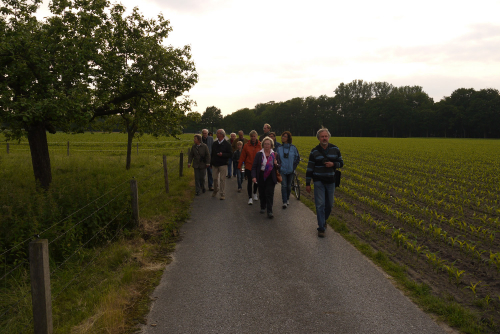Mit großem Interesse nahmen zahlreiche Vogelfreunde aus Gütersloh an der Schwalbenexkursion der Biologischen Station und des Umweltamtes der Stadt Gütersloh teil! Drei Bauernhöfe, auf denen sich sowohl Mehlschwalben als auch Rauchschwalben angesiedelt haben, besuchte die Gruppe auf ihrer abendlichen Wanderung durch die Feldflur von Sundern. Im Juni ist Brutzeit! Die Schwalben sind eifrig damit beschäftigt, ihre Jungen zu füttern. In kurzen Abständen fliegen die Altvögel immer wieder ihr Nest an und bringen dem hungrigen Nachwuchs Insekten, die sie auf den Jagdflügen erbeuten. Die Mehlschwalben brüten auf den Höfen zum Teil auch in künstlichen Nisthilfen, die für sie unter den Dachvorsprüngen angebracht wurden. Die Rauchschwalben - auch "Stallschwalben" genannt - brüten dagegen in den landwirtschaftlichen Gebäuden, wo auch Vieh gehalten wird. So bekamen die interessierten Exkursionsteilnehmer die Rauchschwalben insbesondere beim Ein- und Ausfliegen in, bzw. aus den Ställen zu sehen. Ein besonderes Highlight auf der Exkursion war die Vielzahl der Mehlschwalben in der Siedlung von Sundern: Hier brüten die Glücksbringer an einem Haus in neun natürlichen Nestern und in mehreren künstlichen Nisthilfen nebeneinander! Begeistert schauten wir den aufgeregt zwitschernden Schwalben bei der Fütterung ihrer Jungen zu. Doch nicht nur die Schwalben standen im Mittelpunkt der schönen Wanderung: Andere Gebäudebrüte, wie Hausrotschwänze, Bachstelzen und eine Vielzahl an Feldsperlingen, konnten wir aus der Nähe beobachten. Und schließlich zeigte sich auf zwei Höfen sogar noch der Steinkauz, unsere kleinste, heimische Eulenart. Auch der Kauz brütet gern in landwirtschaftlichen Gebäuden (oder auch in den Höhlen alter Kopfweiden und Obstbäume). Zum Abschluß der Exkursion bekamen wir noch einen Bussard zu sehen, der sich nur mit Mühe über die Felder schwingen konnte - eine große, fette Ratte in seinen Fängen machte es ihm nicht leicht!