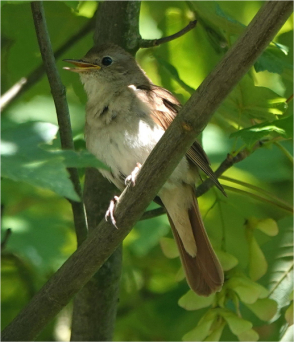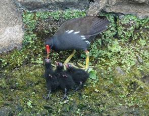 Mit dem Teichhuhn und der Nachtigall kommen auch Vogelarten der Roten Liste von NRW im Gebiet vor. Die Teichhühner kann man sowohl direkt am Schloss als auch an einigen Standorten der Ems sehr schön beobachten. Die Nachtigall dagegen findet sich u.a. in Gebüschzonen, die sich am Rande der Feuchtwiesen befinden und die ihnen geeignete Brutplätze bieten. Vom Sturm umgekippte Bäume dienen ferner mit ihren Wurzeltellern dem Eisvogel, dessen Bestände sich etwas erholt haben, weshalb er nicht mehr auf der Roten Liste NRW steht, als ideale Brutmöglichkeiten. Zudem findet er an der Ems seine Fischnahrung. |