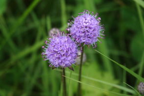 Die Wiesen weisen im Sommer ausgedehnte Blühaspekte mit Wiesen-Flockenblumen (Bild oben) und Sumpf-Hornklee (unten) auf.