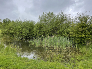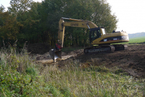 Ein weiteres wichtiges Ergebnis der Projektarbeit ist überdies die Bestätigung der Bedeutung der Umsetzung gezielter Schutzmaßnahmen. Die Biologische Station hat zahlreiche Gewässer im Altkreis Wiedenbrück optimiert. Dabei wurde zumeist der Gehölzaufwuchs im Uferbereich zurückgeschnitten oder gar entfernt sowie die Schlammschicht auf der Gewässersohle mit Hilfe von Baggerarbeiten beseitigt. Aufgrund der natürlichen Sukzession entwickeln sich die Teiche relativ rasch zu artenreichen Biotopen. Die meisten optimierten Gewässer werden früher oder später von den sensiblen Amphibienarten Kammmolch und Laubfrosch angenommen und zur Reproduktion genutzt – vorausgesetzt, die Art kommt bereits im näheren Umfeld vor. Es konnte festgestellt werden, dass oftmals erst der Laubfrosch (Hyla arborea) und in den Folgejahren dann auch der Kammmolch sich ansiedelten. Sie bilden mit einer Vielzahl weiterer Tierarten eine Lebensgemeinschaft. Insgesamt konnte der Kammmolch an 10 Gewässern nachgewiesen werden, welche in den Jahren zuvor optimiert worden sind. Auch der Laubfrosch kommt dort zum Teil sehr zahlreich vor. | Zur Optimierung von Gewässern ist es zumeist auch notwendig, die Schlammschicht am Grund mit einem Bagger zu entfernen. (Bild: C. Oberwelland) Dieses Gewässer wurde 2016 ausgebaggert und von Gehölzen freigestellt. Heute wird es von Kammmolch und Laubfrosch als Laichgewässer genutzt. (Bild: C. Oberwelland) |