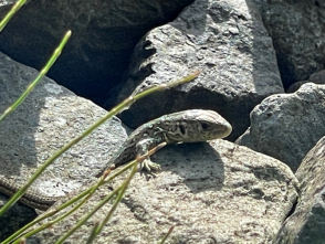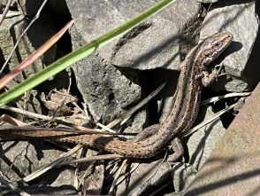 Der Lebensraum der Waldeidechse weist sowohl Sonn- als auch Versteckplätze auf. Die Waldeidechse nutzt das Gleisschotter, um sich aufzuwärmen. |