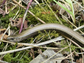 Das Blindschleichen-Weibchen versteckte sich im Randbereich des Steinbruches. |