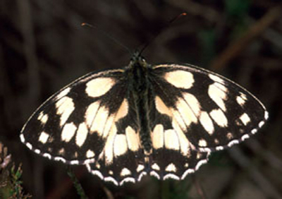 Das Schachbrett ist ein typischer Bewohner von blütenreichen Wiesen auf Sand oder Kalk. Die Eiablage erfolgt relativ unspezifisch an verschiedenen Süßgräsern. Wesentlich für die Eiablage sind unbeschattete, magere, strukturreiche und zum Zeitpunkt der Eiablage ungemähte Grasbestände. Als Nektarpflanze werden die lila blühenden Flockenblumen bevorzugt.