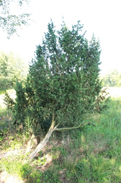 Der Wacholder besitzt im Kreis Gütersloh aktuell nur noch sehr wenige Vorkommen im Raum Halle/Steinhagen und Schloß Holte-Stukenbrock. Die einst weit verbreitete Charakterpflanze der Heiden weist heute fast nur noch Reliktbestände auf, die zudem meist im Unterwuchs von Wäldern liegen. Ein bemerkenswertes Vorkommen der Art befindet sich in der Bergheide auf dem Sandsteinzug des Teutoburger Waldes westlich der Schwedenschanze. Diese Wacholder-Bestände dienten bereits in früheren Jahrhunderten Steinhagenern Bauern zur Herstellung eines „Heiltrunkes“, aus dem sich später nach Gründung einiger Brauerei-Betriebe im Steinhagener Raum der Wacholderschnaps („Stichwort: Steinhäger“) entwickelte. Seit mehr als 100 Jahren werden allerdings die Wacholderbeeren zur Herstellung des Schnapses aus Italien eingeführt, weshalb die Bestände auf dem Osning-Sandsteinzug in ihrer Nutzung aufgegeben und zumeist sich selbst überlassen wurden.
