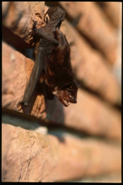 - Schaffung neuer Quartiere: Als Spaltenquartierbewohner nehmen Breitflügelfledermäuse enge Hohlräume (z.B. hinter Verkleidungen) und kleine Öffnungen im Mauerwerk mit Zugang zu kleinen Hohlräumen an. Die Quartiere und ihre Ein- bzw. Auskriechöffnungen sollten für Fressfeinde (Katzen, Marder, Greifvögel, Eulen) nicht zugänglich sein. Außerdem ist ein möglichst konstantes Klima mit am Tage niedrigeren Temperaturen von Vorteil.