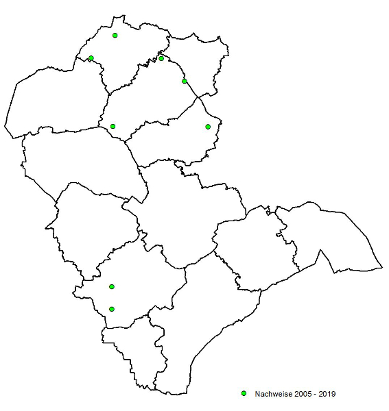 Einzelnachweise aus Gütersloh, in Fledermauskästen im Naturschutzgebiet Salzenteichsheide und aus Winterquartieren.