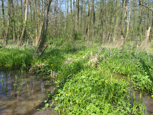 Bruchwälder als natürliche Waldgesellschaften finden sich auf intakten Niedermoorböden mit hohem Grundwasserstand bei unterschiedlichen Nährstoffgehalten und pH-Werten. Diese Wälder sind insbesondere in den Wintermonaten überflutet, weisen aber auch im Sommer überstaute bzw. nasse Bereiche auf. Bei nicht zu sauren Bodenverhältnissen liegt gewöhnlich ein Erlen-Bruchwald vor. Im Kreis Gütersloh sind Erlen-Bruchwälder in guter Ausprägung leider nur noch an wenigen Stellen erhalten geblieben, z.B. im NSG "Erlenbruch und Schlosswiesen Rheda" und im NSG "Kipshagener Teiche“.