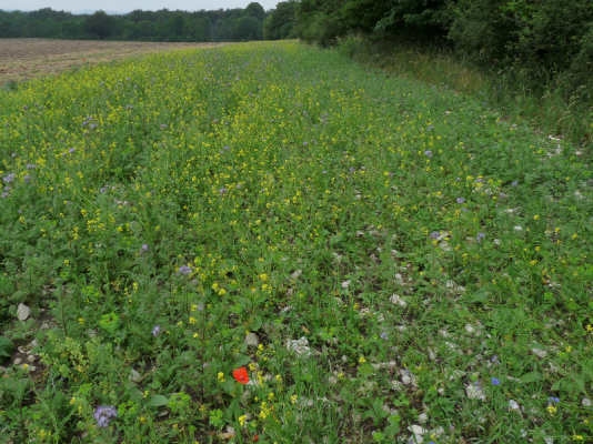 Hinzu kommen Ackerwildkräuter mit einer weiteren Standortamplitude, wie die Kleine Wolfsmilch (Euphorbia exigua), der mit auffällig roten Blüten ausgestattete Acker-Gauchheil (Anagallis arvensis) oder die Ackerröte (Sherardia arvensis), welche auch auf tiefgründigeren Lehmäckern vorkommen.