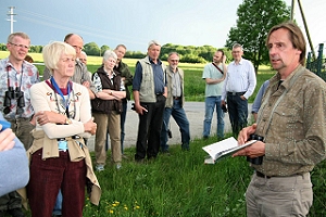Mai 2009: Naturkundliche Abendwanderung durch die Langenberger Feldflur Auf den Spuren von Laubfrosch und Steinkauz - interessierte Naturfreunde erfreuen sich an dem Froschkonzert des Laubfrosches und den abendlichen Balzrufen des Steinkauzes in Langenberg.