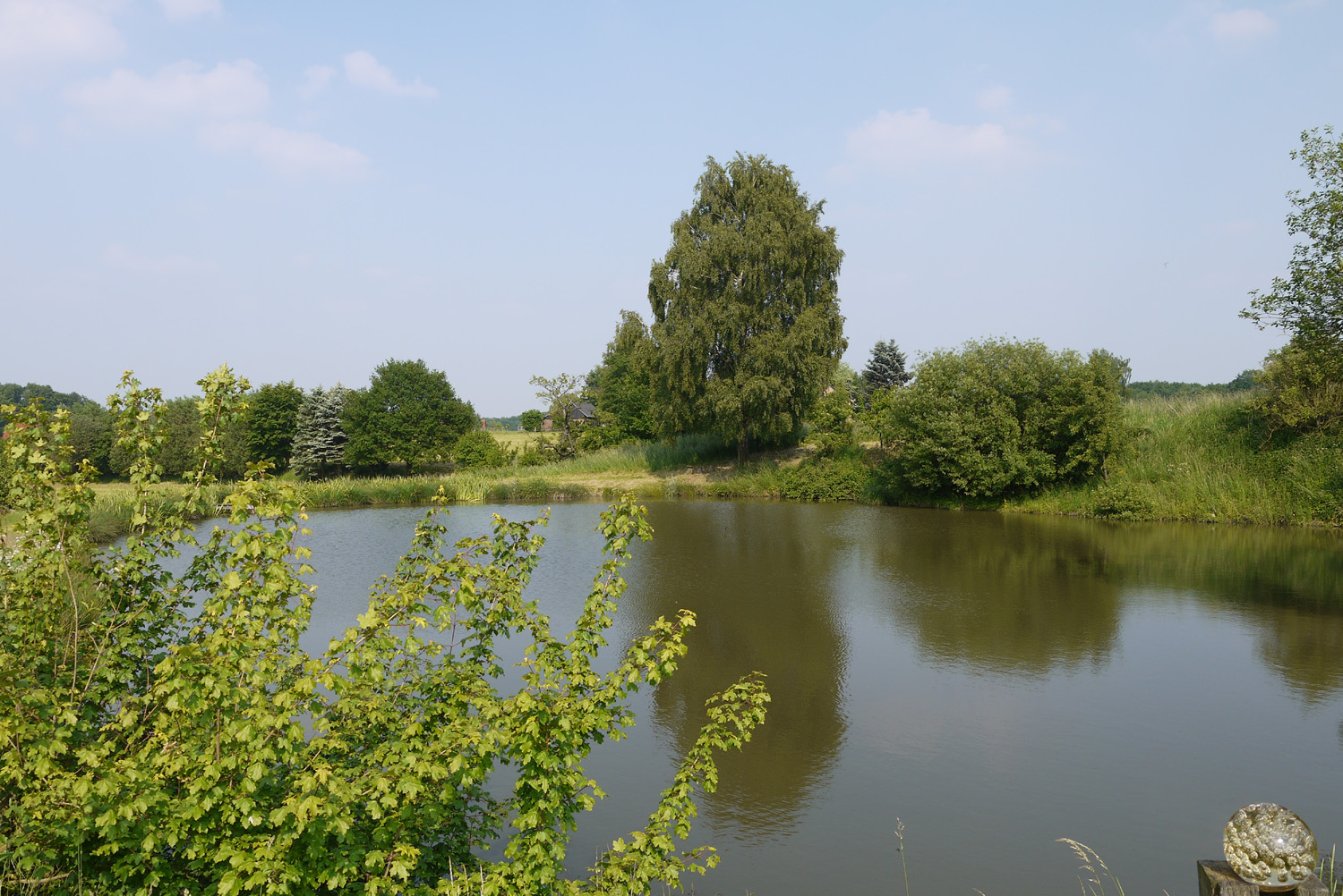 Hier lässt sich der Eisvogel regelmäßig blicken: an dem Fischteich von dem Ehepaar Lösenbeck in Werther-Theenhausen. Der kleine Glücksbringer saß dem Hausherrn sogar schon auf der Angel, um nach Beute im Wasser Ausschau zu halten. Doch zum Brüten mangelte es bislang an einer geeigneten Steilwand. | |