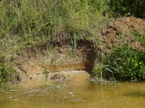 | Und noch einer weiteren besonderen Art kann dieses Gewässer nun als Lebensraum dienen: Mit der Anlage einer Steilwand am Ufer wird dem Eisvogel eine neue Brutmöglichkeit geboten. Im Herbst 2014 baut die Biologische Station für den Eisvogel zusätzlich noch eine gemauerte Brutwand mit einer Niströhre für den Eisvogel. Mal sehen, wie lang der "fliegende Edelstein" auf sich warten lässt...! |