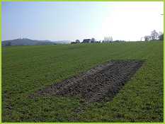 | Für die Anlage von Lerchenfenstern braucht die Sämaschine nur kurz angehoben werden. Sie sind etwa 20 m2 groß und begrünen sich von selbst. Von 2006 bis 2010 wurden ca. 338 Fenster angelegt, in deren Bereich zahlreiche Brutreviere erfasst werden konnten. | ||