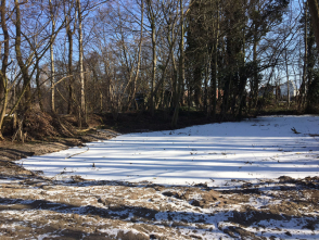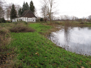 Nach der Pflegemaßnahme: Das Ufer steht frei. Das Gewässer wird nicht mehr beschattet und es erfolgt kein Laubeintrag durch Gehölze. |