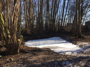 Zur Optimierung der Teiche wurden die Erlen, die sich in den Uferbereich angesiedelt haben, entfernt. Auf diese Weise wird der Lichteinfall in die Gewässer und damit die Wassertemperatur für die Amphibien verbessert. Zudem werden der Laubeintrag und die Eutrophierung der Teiche verringert. |