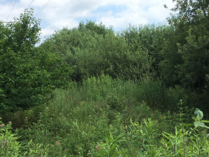 Dieses Gewässer ist stark verbuscht und führt aufgrund der extremen Trockenheit kein Wasser mehr. |