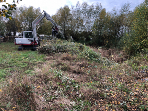 | Zum Erhalt solch wertvoller Wasserlebensräume sind regelmäßige Pflegemaßnahmen von Nöten. Für die Optimierung des Gewässers wurde der Uferbereich von Gehölzen freigestellt. Auf diese Weise wird die Wasserfläche wieder durch die Sonneneinstrahlung erwärmt. Davon profitieren die Amphibienlarven: Sie entwickeln sich schneller in den Warmwasserzonen und haben eine größere Fitness, wenn sie in den Winter gehen. |