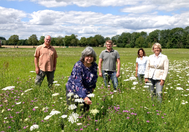 Erste Erfolge: die Wiese bei einem Pressetermin 2020: v.l. Stefan