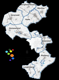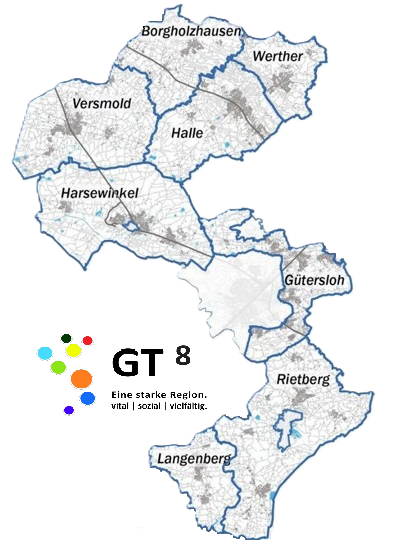 Die LEADER-Region GT8 im Kreis Gütersloh umfasst die Städte und Gemeinden Borgholzhausen, Teile von Gütersloh, Halle, Harsewinkel, Langenberg, Rietberg, Versmold und Werther. LEADER ist ein EU-Förderprogramm, das auf die Verbesserung der Lebensqualität im ländlichen Raum abzielt und umfasst auch Siedlungsgebiete mit bis zu 30.000 Einwohnern. Wann wird gefördert? Die Planungsphase der Fördermöglichkeiten ist für 19 Monate angesetzt und läuft bis Dezember 2026. Die zweite Phase des Projektes wird als Folgeantrag gestellt und ist für 2027 vorgesehen. Mit Bewilligung des Folgeantrages beginnt die Maßnahmensumsetzung der in der ersten Phase geplanten Projekte. Beratungen, Schulungen und Seminare werden jedoch auch in 2027 weiterhin geplant sein. |